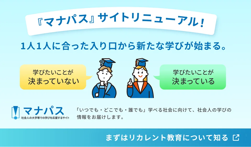 文部科学省が運営する社会人向けの学びの情報サイト「マナパス」が、2025年2月27日に大幅リニューアルを果たしました。これまで利用者から寄せられた意見を基に、幅広いニーズに応えるコンテンツが新たに加わっています。今回のリニューアルでは、特にリカレント教育や自己学習に興味のある社会人を対象にし、多様な学びの選択肢を提供します。