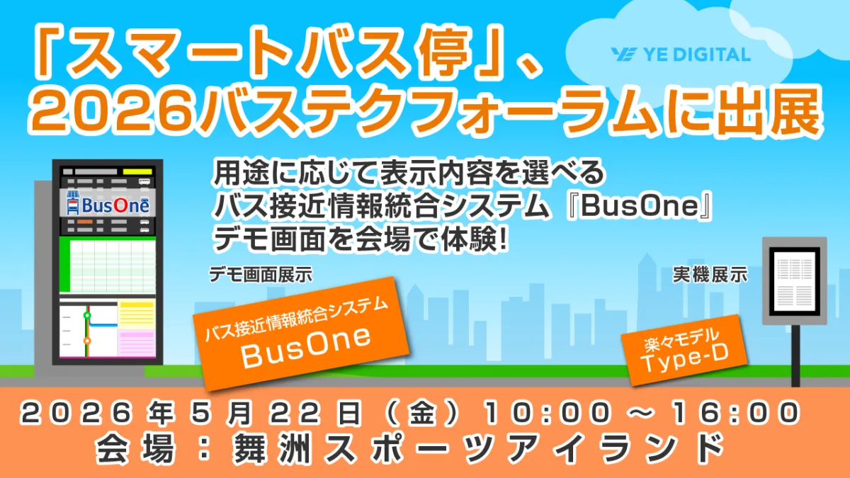 2026年5月22日、大阪市の舞洲スポーツアイランドで開催される『2026バステクフォーラム』は、次世代のバス交通システムを体験できる貴重な機会です。このイベントでは、株式会社YE DIGITALが誇る「スマートバス停」と新たに開発されたバス接近情報システム「BusOne」と「BusOne-Lite」が紹介されます。これらの技術は、公共交通の利便性を飛躍的に向上させるものとして注目されています。