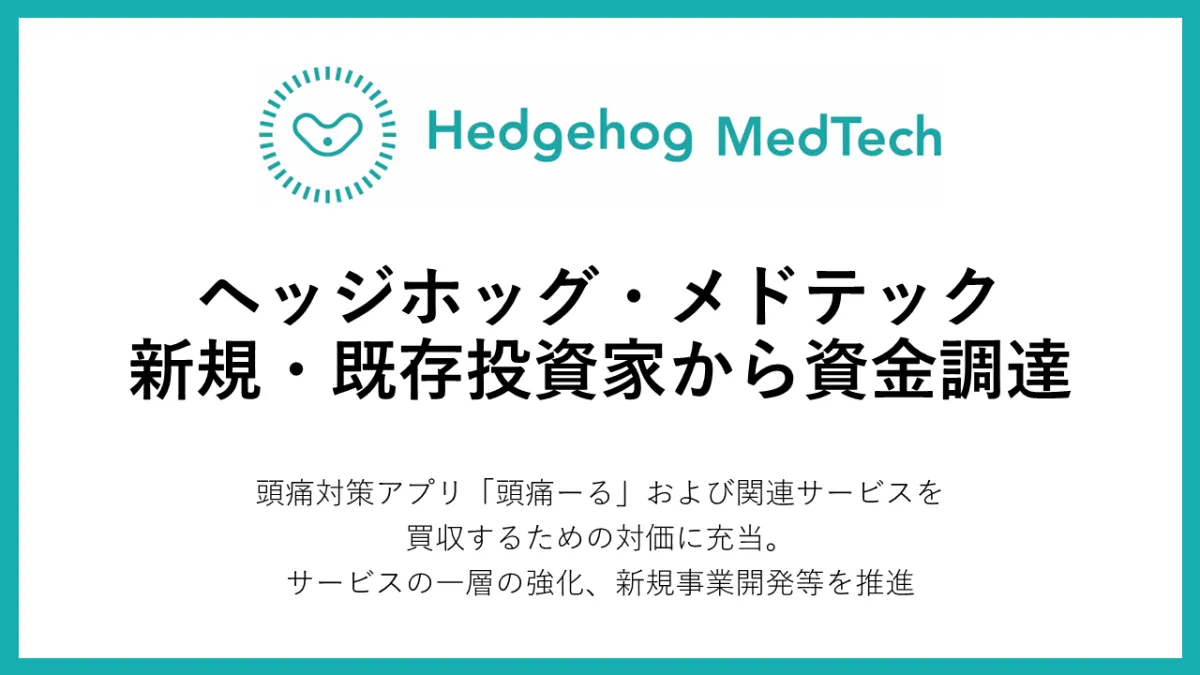 東京 文京区に本社を構える株式会社ヘッジホッグ・メドテック(CEO: 川田裕美)は、2025年10月に株式会社メドレー(東京 港区、社長: 瀧口 浩平)との資金調達を実施したと発表しました。