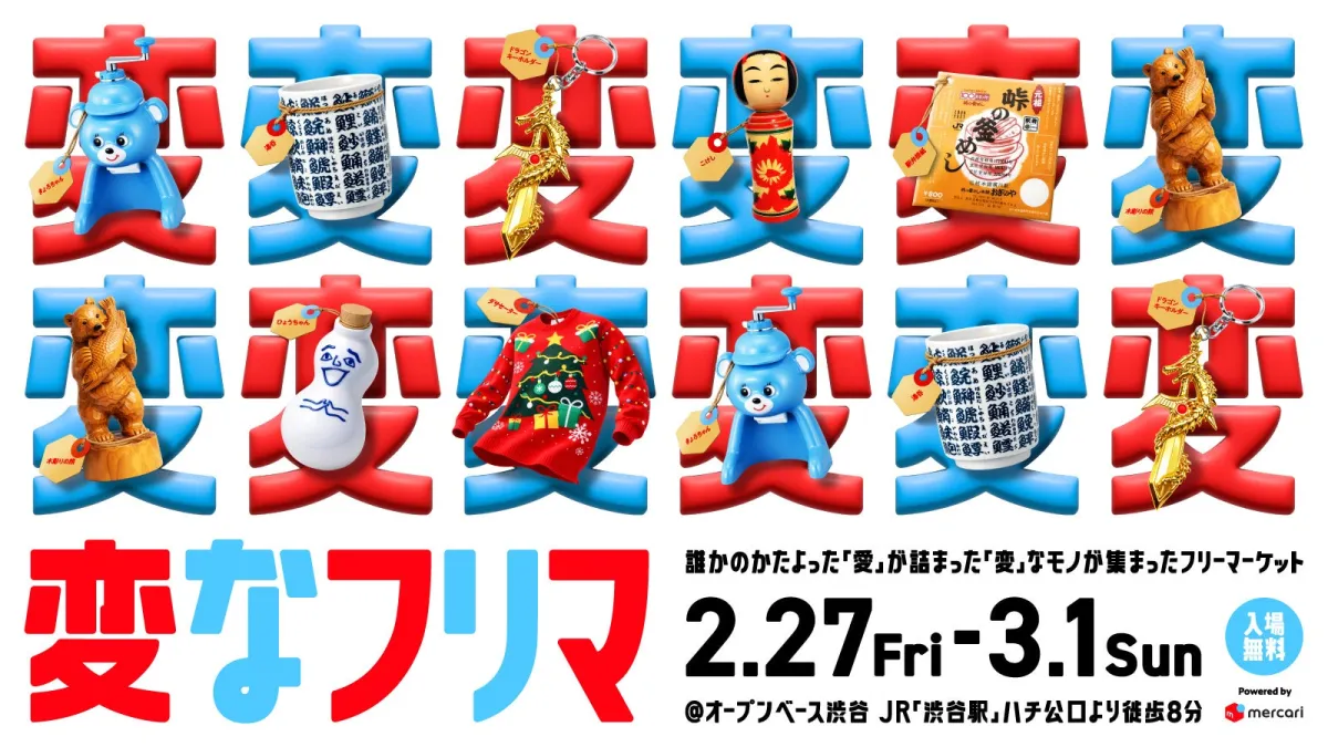 2026年2月27日から3月1日の3日間、東京・渋谷のOPENBASE SHIBUYAで、株式会社メルカリが独自の体験型フリーマーケットイベント『変なフリマ』を開催します。このイベントでは、愛をこめて集められた約200点の逸品が一堂に会し、見るだけでなく体験し、購入する機会も提供されます。また、現役高校生アーティストのMON7Aさんによる特別なフリーマーケットも行われます。ここでは、単なる物販の枠を超えた新しい出会いが期待されています。