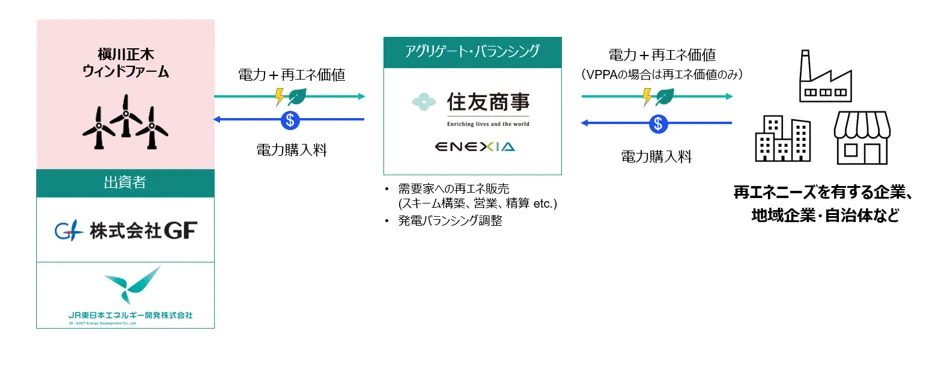本事業は、2012年8月に着手し、2013年4月には環境アセスメントの手続きを開始しました。特に、2018年にスタートした本プロジェクトは、地域との協議を重ねることで進められてきました。住友商事もアグリゲーターとして参画し、2026年3月1日からFIP制度を活用して本発電所の電力と環境価値を市場取引およびコーポレートPPAを通じて供給します。