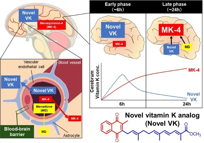 実験では、この誘導体が血液脳関門をスムーズに通過し、神経細胞への分化を促進できることが確認されています。さらに、血漿中でビタミンK2(MK-4)に変換されることで、高い効果を持続的に発揮することも分かりました。これにより、神経細胞が失われた脳の機能を回復させる期待が高まっています。