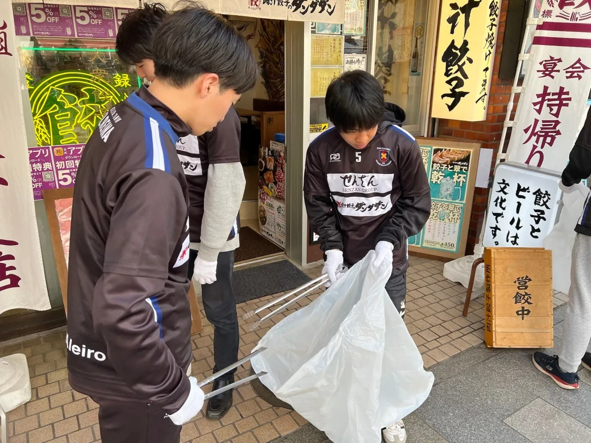 先日、日吉キャンパス近くの肉汁餃子のダンダダン大倉山店では、エルレイナの部員とダンダダンのスタッフが協力してゴミ拾い活動を実施しました。周囲の商店街の方々や通行人との交流も生まれたこの活動は、地域の清掃だけでなく、人々の絆を深める場ともなりました。