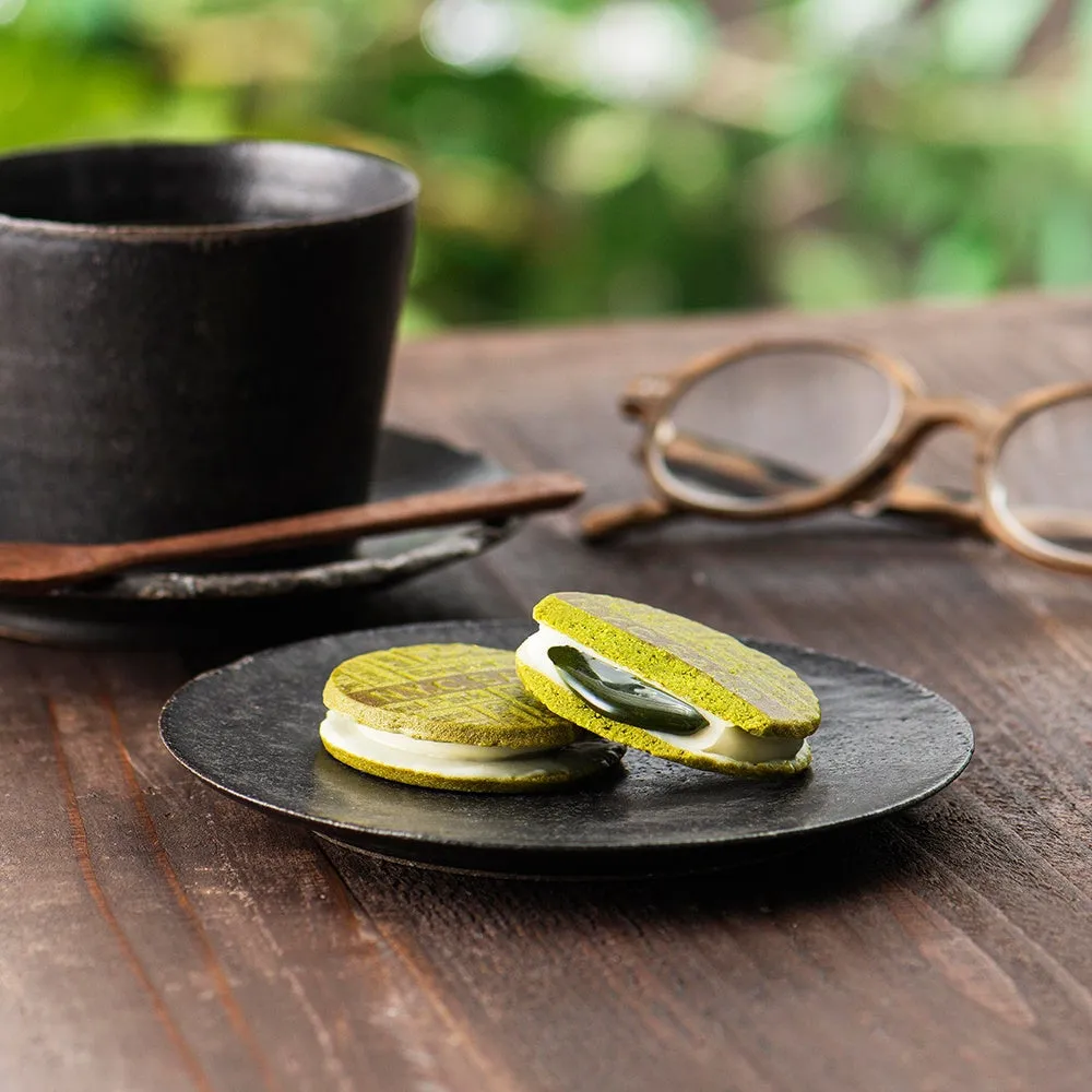 「N.Y.抹茶キャラメルサンド」は、香ばしい抹茶のクッキーにバニラとミルク風味のホワイトチョコレートを重ね、その上にとろけるキャラメルをサンドしています。これにより、抹茶の本質的な味わいや苦味を引き立てる、とても洗練された味わいが楽しめます。また、個包装には「流水紋」がデザインされており、まるで日本庭園にいるような穏やかさと癒しを感じさせてくれます。