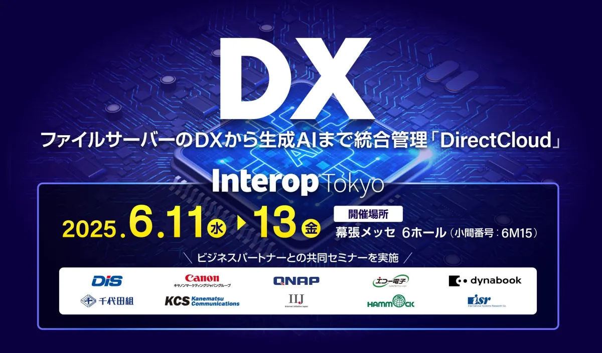 株式会社ダイレクトクラウドは、2025年6月11日から13日まで幕張メッセで開催される「Interop Tokyo 2025」に出展します。本展示会では、同社の法人向けクラウドストレージ「DirectCloud」がもたらす革新的なソリューションとサービスを紹介。特に注目なのは、ユーザー無制限で提供される高品質な生成AIサービスです。