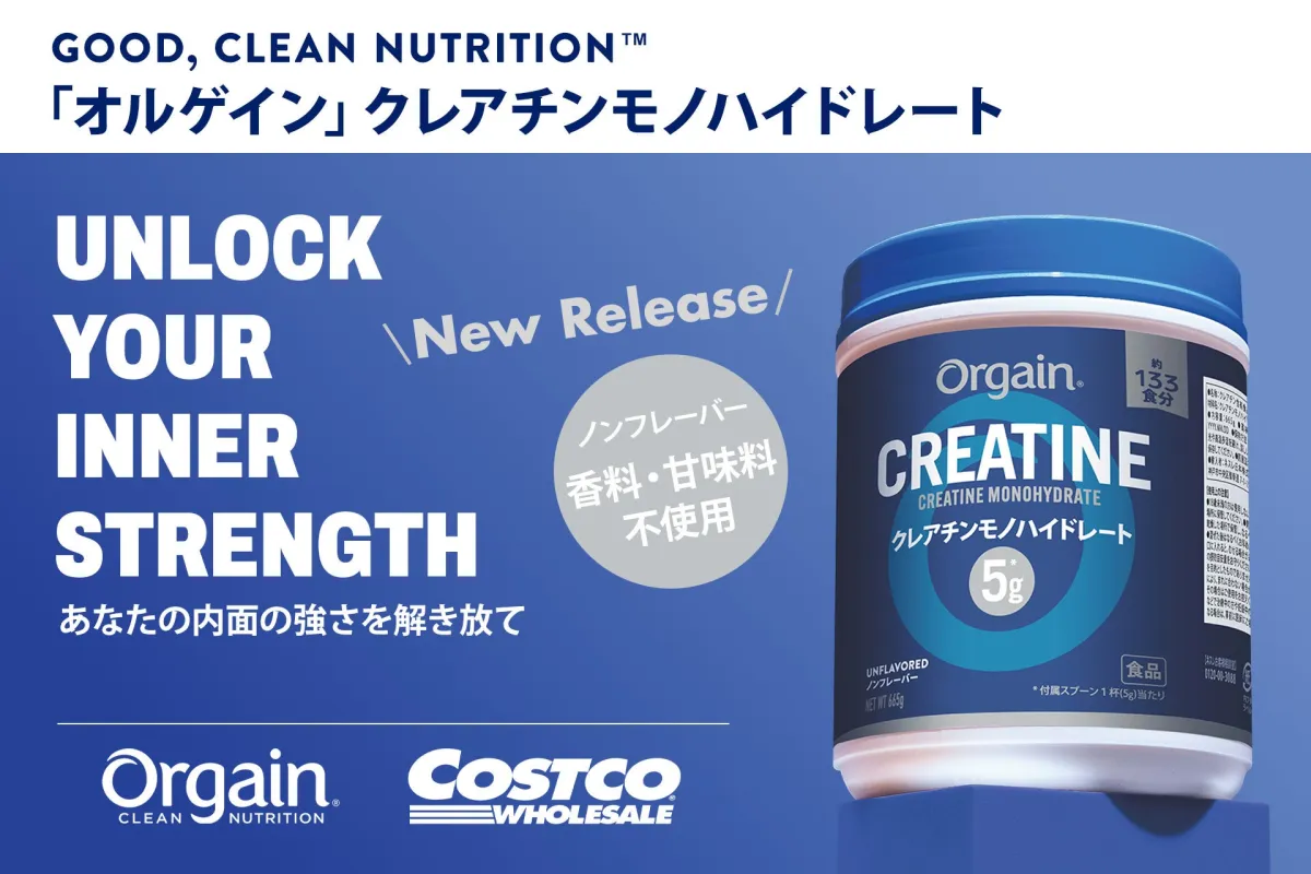 「Orgain」は、「GOOD, CLEAN NUTRITION」をキーワードに設立されたブランドです。健康に配慮した食生活を大切にし、より健康的で活力に満ちた生活を送るための製品を提供しています。今回の「クレアチンモノハイドレート」も、この理念のもとに開発された商品で、主成分は100%微粉状のクレアチンモノハイドレートです。