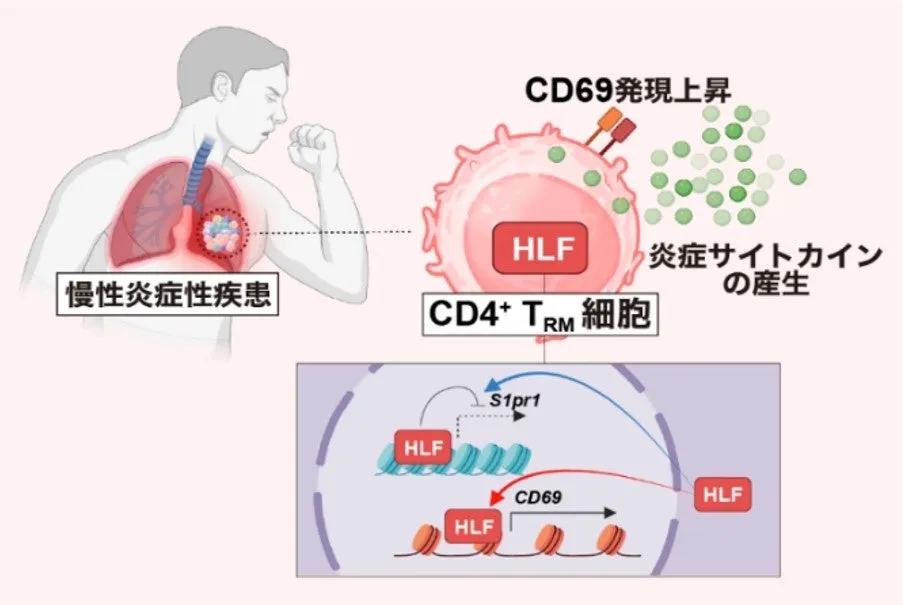 千葉大学大学院医学研究院の木内政宏助教と平原潔教授の研究チームは、慢性炎症を引き起こすメカニズムに新たな光を当てる発見をしました。彼らの研究によれば、「Hepatic Leukemia Factor(HLF)」という転写因子が、慢性炎症を促進する特定の免疫細胞、すなわち「組織常在性記憶CD4+T細胞(CD4+TRM細胞)」の定着に関与していることが分かりました。