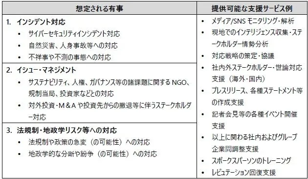 フライシュマン・ヒラード・ジャパン株式会社(FHJ)は、グローバルな危機に対応するための専門サービス「グローバル有事対応デスク」の提供を発表しました。この新しいサービスは、日本企業が世界各国・地域で直面する可能性のある有事に対し、マスコミやステークホルダーに適切に対応できるよう支援することを目的としています。