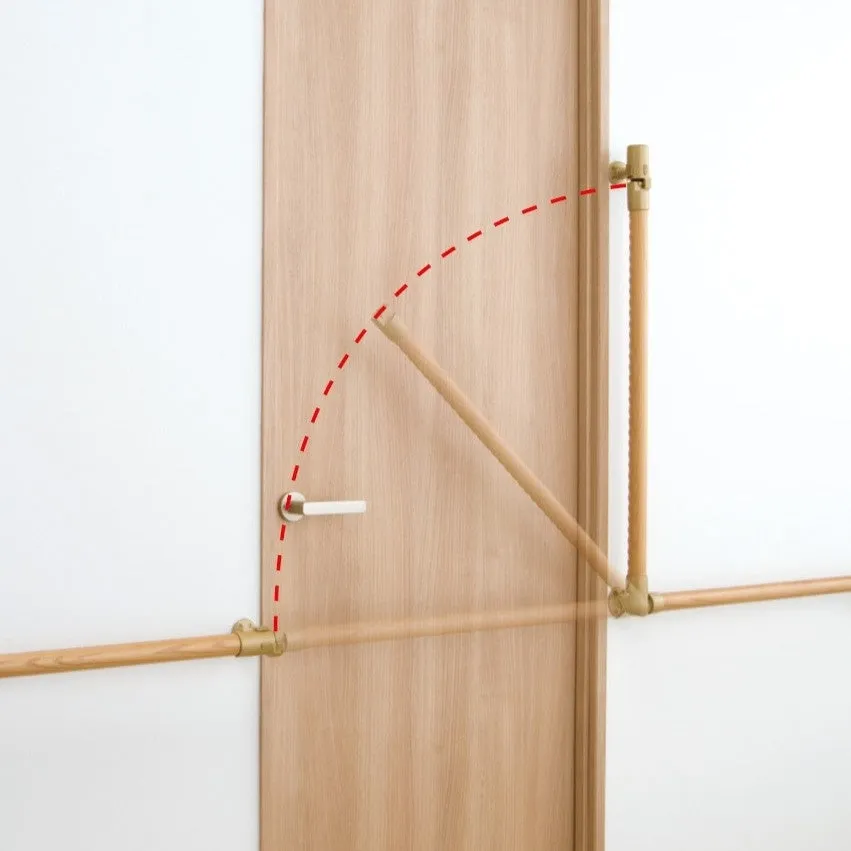 マツ六の「遮断機式手すり」は、特に高齢者や障がい者が自立した生活を送るために必要な設備です。手すりが連続していることが重要で、開口部や通路などで手すりが途切れてしまうことは大きなリスクとなります。この製品は、開閉式の手すりにすることで、目的の場所までの安全な移動を実現しています。