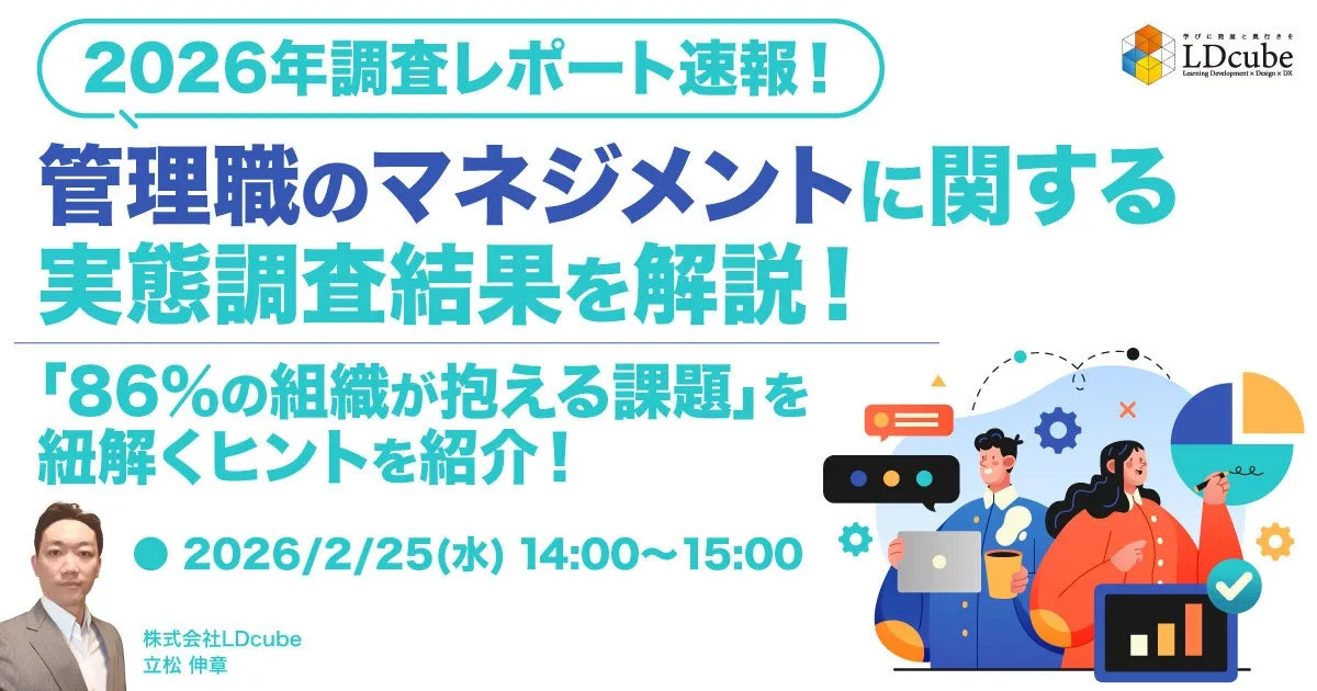 次回、2026年2月25日14時から開催されるウェビナーでは、この調査結果をもとに具体的な解決策を探る内容となっています。本ウェビナーは、特に経営幹部や人事担当者、管理職の育成に関わる方々にとって、今後のマネジメントや部下育成を見直す良いきっかけになるでしょう。