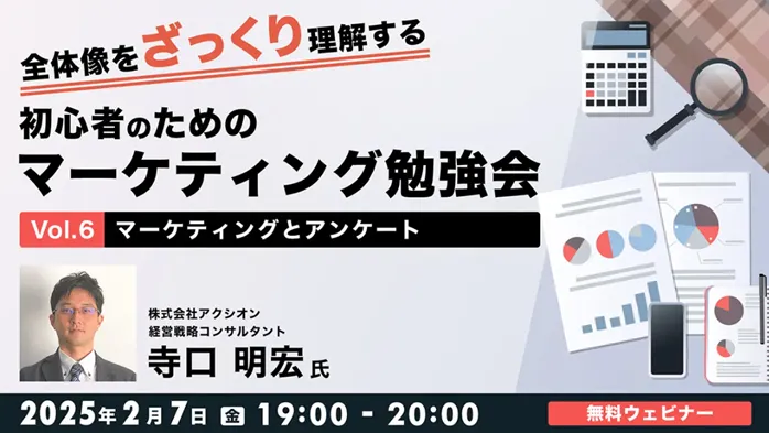 株式会社クリーク・アンド・リバー社(C&R社)は、2025年2月7日(金)に「全体像をざっくり理解する 初心者のためのマーケティング勉強会Vol.6」を開催します。本セミナーはマーケティングの基礎を学びたい方や、未経験ながら企業のマーケティングやメディア運用を担当している方々に向けたものです。参加費は無料で、オンラインでの実施となります。