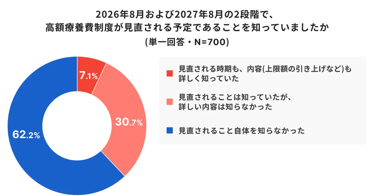株式会社モニクルフィナンシャルが実施した調査によると、高額療養費制度の見直しに関する認知度は非常に低かったことが分かりました。この調査は2026年に予定されている制度見直しについてのもので、700名の20歳以上の男女を対象に実施されました。