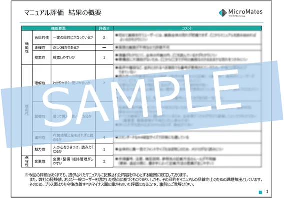 - わかりやすさ、探しやすさ、統一性、デザイン、保守性の5つの観点からマニュアルを評価し、改善のためのスケジュールを検討します。