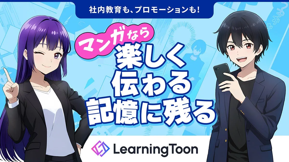 「LearningToon」は、法人向けの「伝えたいけど伝わらない」を解決する手段として、マンガ形式で情報を提供します。研修資料や企業理念の浸透、サービス紹介などを読みやすく、共感しやすい形にマンガで表現することで、コミュニケーションの効率を大幅に向上させることを目指します。リニューアル後は、従来の研修用途に加えて、サービス訴求や社内外のコミュニケーションに特化したマンガ制作が行えるようになります。