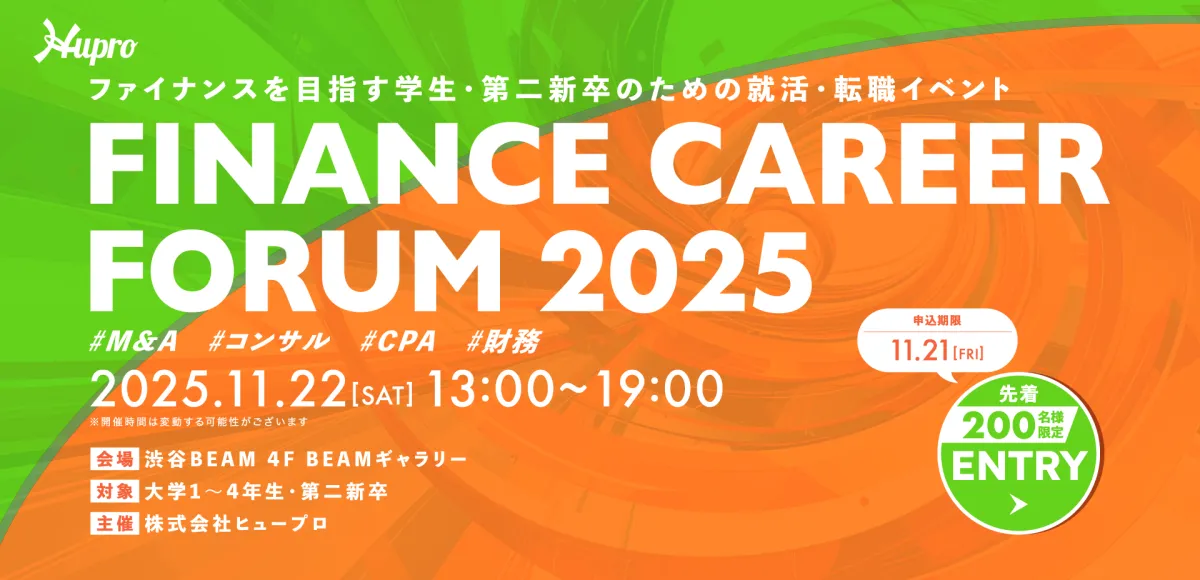 来る2025年11月22日、株式会社ヒュープロが主催する「Finance Career Forum 2025」が渋谷で開催されます。このイベントは、ファイナンス分野に興味を持つ大学生や第二新卒を対象に、就活や転職の機会を提供するものです。会計業界の実際の業務を体験し、さらには税理士事務所や事業会社とのつながりを持つことができる貴重な機会となります。