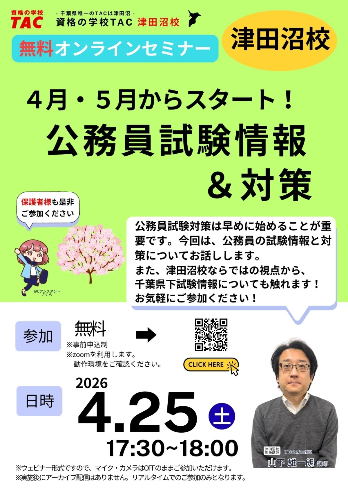 これから公務員試験を目指す方々にとって、早期のスタートが重要です。TACでは、千葉県の試験情報についても触れながら、地域に密着した具体的なアドバイスを行っていきますので、どなたでもお気軽にご参加いただけます。