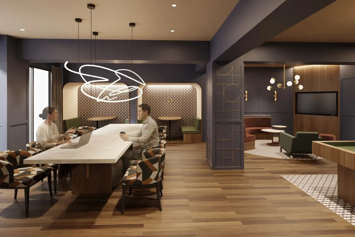 また、作業スペースも充実しており、集中して仕事ができるボックスシートやコーヒーカウンター、さらにはシアタースペースを備えています。これにより、リモートワークやオンライン会議を快適に行うことができ、仕事をしながら心地よい環境で過ごせます。さまざまなシーンに応じた使い方ができるため、まさに多機能のラウンジと言えます。