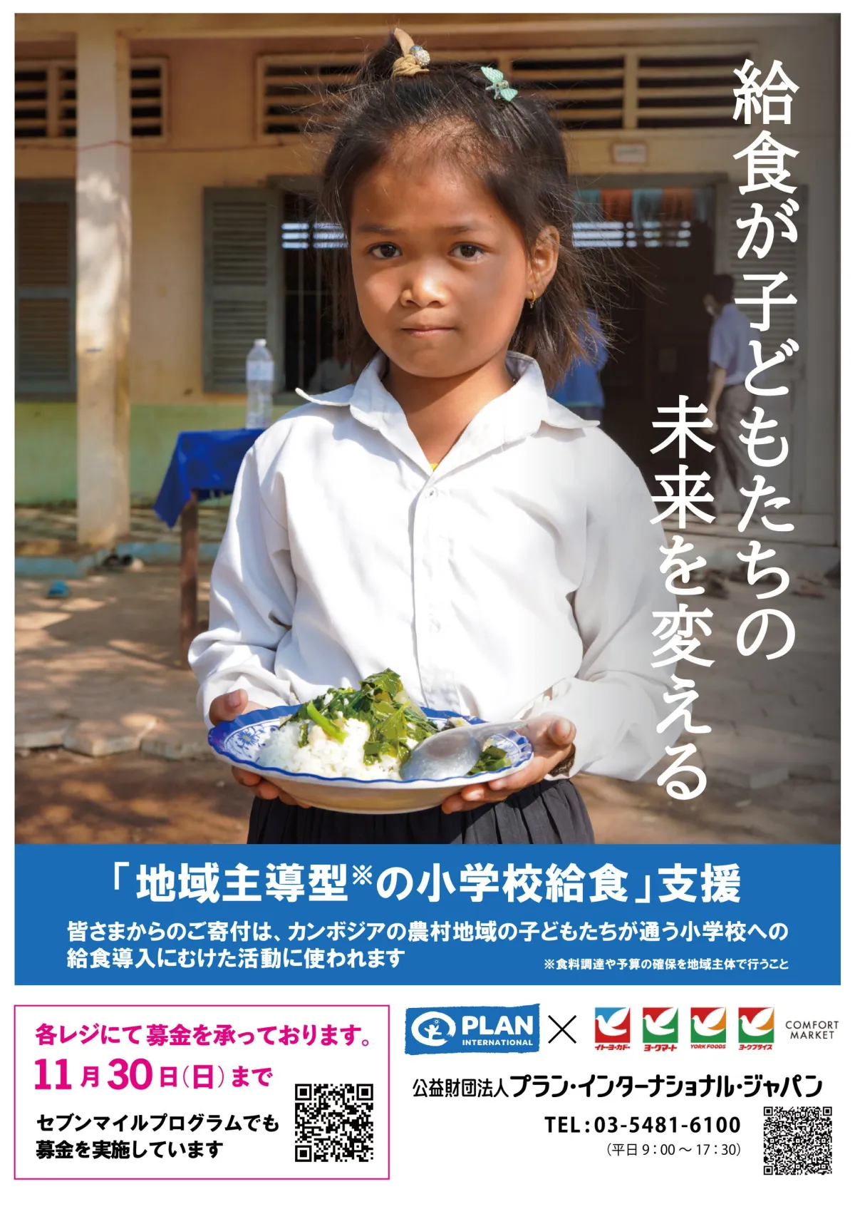 今回の募金活動は、2025年9月を起点に約3カ月間、プランがカンボジアで実施する「地域主導型小学校給食」プロジェクトに使われます。この取り組みでは、学校における給食の導入や持続可能な地域支援が目指されており、全国のイトーヨーカドーとヨーク全店舗での募金によって、297万8,959円という額が寄せられました。