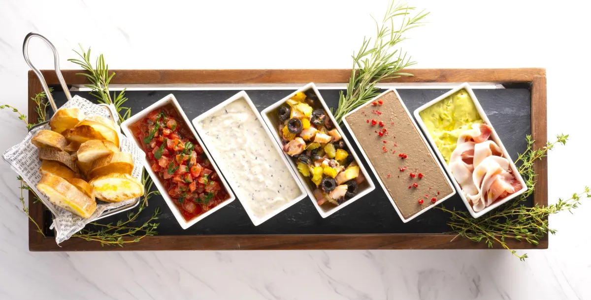 中部イタリアの伝統的なアンティパストであるブルスケッタは、香ばしく焼き上げたパンに新鮮なオリーブオイルや旬の具材をトッピングして楽しむ料理です。バリエーションは5種で、自分好みにアレンジ可能です。