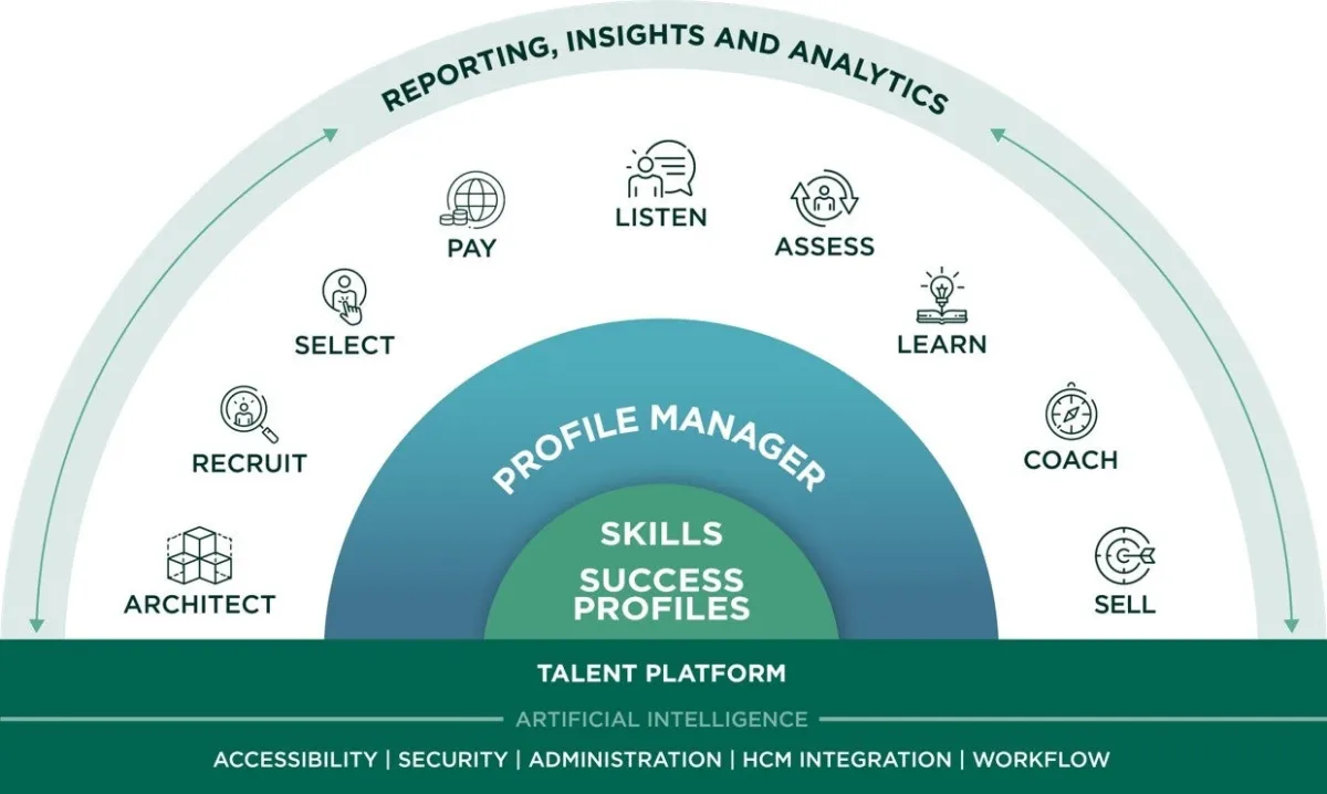 「Talent Suite」は、企業が求める「ジョブ」に必要なスキルや責任を明確にするための10種類のモジュールから成るSaaS型アプリケーション群です。その主要な構成要素には、