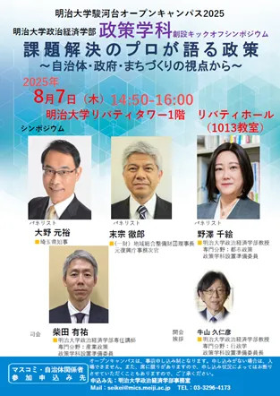 これからの明治大学の政策学科に関して、更なる成長と発展が期待される中、シンポジウムはその第一歩を踏み出す重要なイベントとなります。