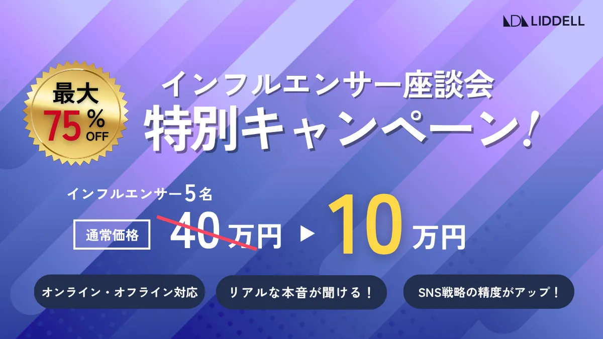 最近、LIDDELLは「INFLUFECT」というSNS・インフルエンサープラットフォームを通じて、5名の人気インフルエンサーとともにオンラインまたはオフラインで座談会を行う特別キャンペーンを開始しました。この座談会は、限られた期間中に10万円(税別)という特別価格で提供されています。この機会を利用することで、企業はSNS戦略を見直し、効果的な施策を設計する上でのインサイトを得ることができます。