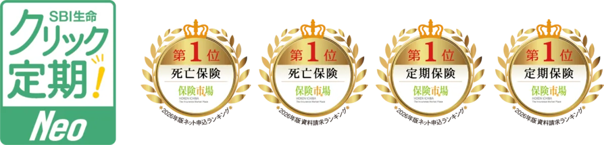この商品の死亡保険部門では、ネット申込と資料請求のどちらも第1位を6年連続で達成しています。また、これは定期保険部門でも同じく、ネット申込と資料請求の両方で10年連続の成果です。クリック定期!Neoは、業界最安水準の保険料、迅速な申し込みプロセスを誇り、300万円から1億円までの保険金額を選択可能です。