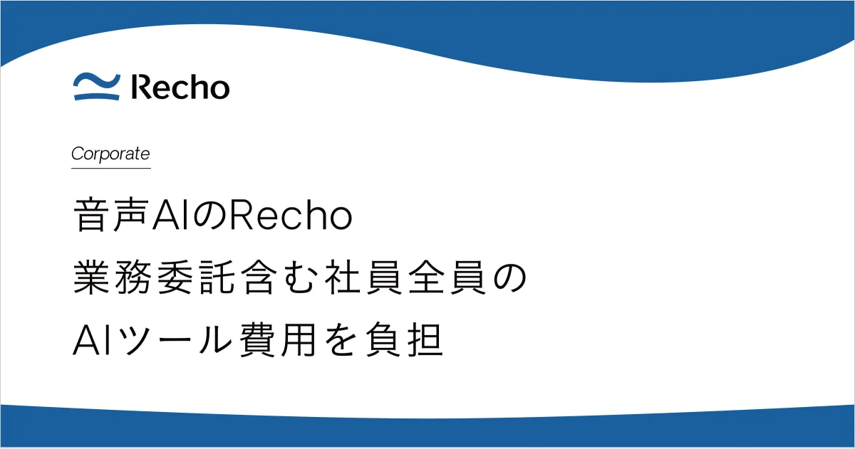 株式会社Recho(読み方:レコー)は、全社員および業務委託メンバーを対象に、業務で利用するAIツールの利用費用を月額最大3万円まで会社が負担する「AI活用支援制度」を導入します。この取り組みは2025年7月1日から適用され、AI技術を日常業務に活用する文化をさらに推進するものです。
