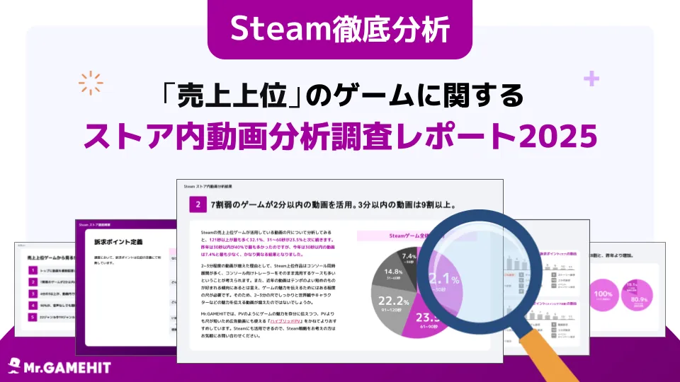 以上が2025年のSteamストア動画分析調査の主なポイントです。ホワイトペーパー本編では、さらに詳しいジャンル分析や個々のゲーム関連のデータも無料で公開されているので、興味のある方はぜひダウンロードしてみてください。