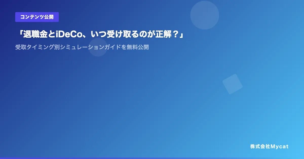 株式会社Mycatが、退職金とiDeCoの受取タイミングに特化したシミュレーションガイドを無料で公開しました。このガイドは、退職後の生活をより豊かにするために、手取り額を最大化する方法を探る手助けとなります。