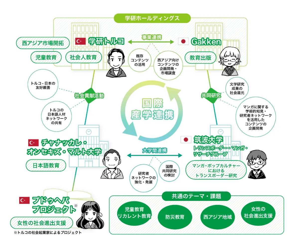 株式会社学研ホールディングスの子会社、Gakken Turkey Inovatif Eğitim A.Ş.(学研トルコ)は、国立大学法人筑波大学との国際共同研究プロジェクトを正式にスタートしました。このプロジェクトは、日本とトルコが共通して抱える重要な社会課題への取り組みを目指しています。具体的には、女性の社会進出や地震災害への備えといったテーマに対し、マンガや文学を活用して理解を深め、行動を促すことが目的です。