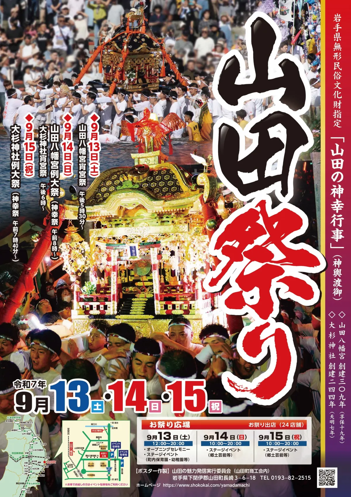 岩手県山田町では、令和7年9月13日から15日までの期間、伝統の「山田祭り」が開催されます。この祭りは、岩手県の無形民俗文化財に指定されており、地域の歴史や文化を感じる貴重な機会です。最大の見どころは、神輿や郷土芸能が盛り込まれた多彩なステージイベントです。