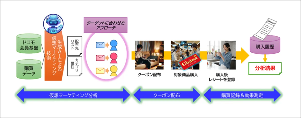 株式会社ロッテと株式会社NTTドコモは、最新の仮想マーケティング技術を駆使したクーポン配信に関する実証実験を成功裡に終えた。この実験は、ドコモの持つ大規模な消費者データを活用し、仮想顧客を生成することで、より効果的なマーケティングアプローチを模索するものであった。