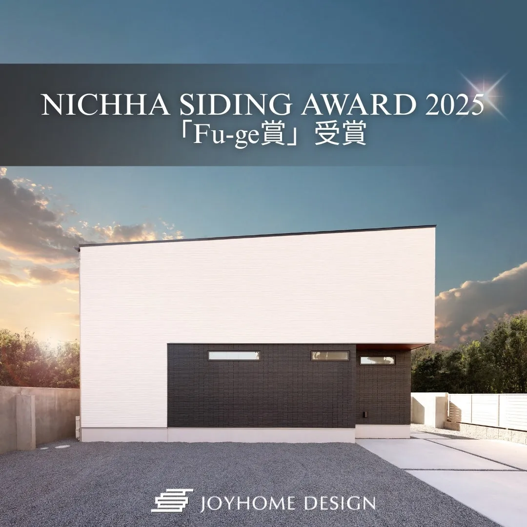 株式会社ジョイホーム(ジョイホームデザイン)が、2025年に開催された「NICHIHA SIDING AWARD」で「Fu-ge賞」を受賞しました。本アワードは、ニチハの外装材を使用した建築作品を対象に、優れたデザイン性や施工性、周辺環境との調和が評価されるコンペティションです。