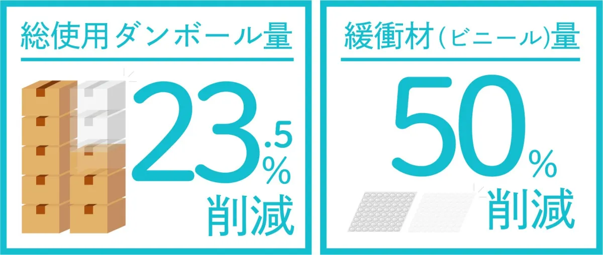 ラメリア・ジャパンは、工夫を凝らした段ボールの折り方を採用することで、保護性能を保ちながら段ボールの使用量を大幅に減少させることに成功しました。具体的には、従来の梱包箱と比較して段ボールの使用量を23.5%、緩衝材も50%削減することができました。この結果、コスト削減だけでなく、環境への負荷も軽減することができたのです。