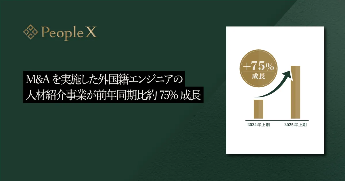 株式会社PeopleX(以下、当社)は、東京都新宿区に本社を構え、最新のAI技術を活用した人材紹介事業を展開しています。特に外国籍エンジニアの人材紹介において、前年比約75%の成長を達成したことを発表しました。この成長は、吸収合併の成果といえるでしょう。