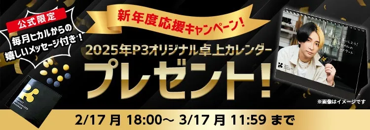 キャンペーン期間中に初めてP3を購入したユーザーには、ヒカルのオリジナルメッセージが印刷された卓上カレンダーを贈呈。カレンダーには、ヒカルがその月に頑張りを応援する特別なメッセージが添えられています。カレンダーは2025年2月下旬から順次発送される予定です。