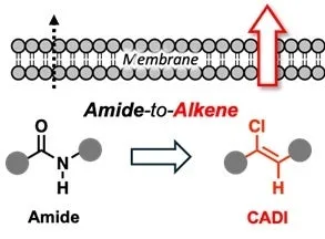 研究チームが導入したのは、ジペプチドの生物学的等価体であるクロロアルケンジペプチドイソスター(CADI)です。これをペプチドに組み合わせることで、膜透過性が飛躍的に向上する新しい分子設計が実現しました。特に、N-メチルアミドやエステル、チオアミドといった既存の技術と比較し、CADIが最も高い受動的膜透過性を示すことが確認されたのです。