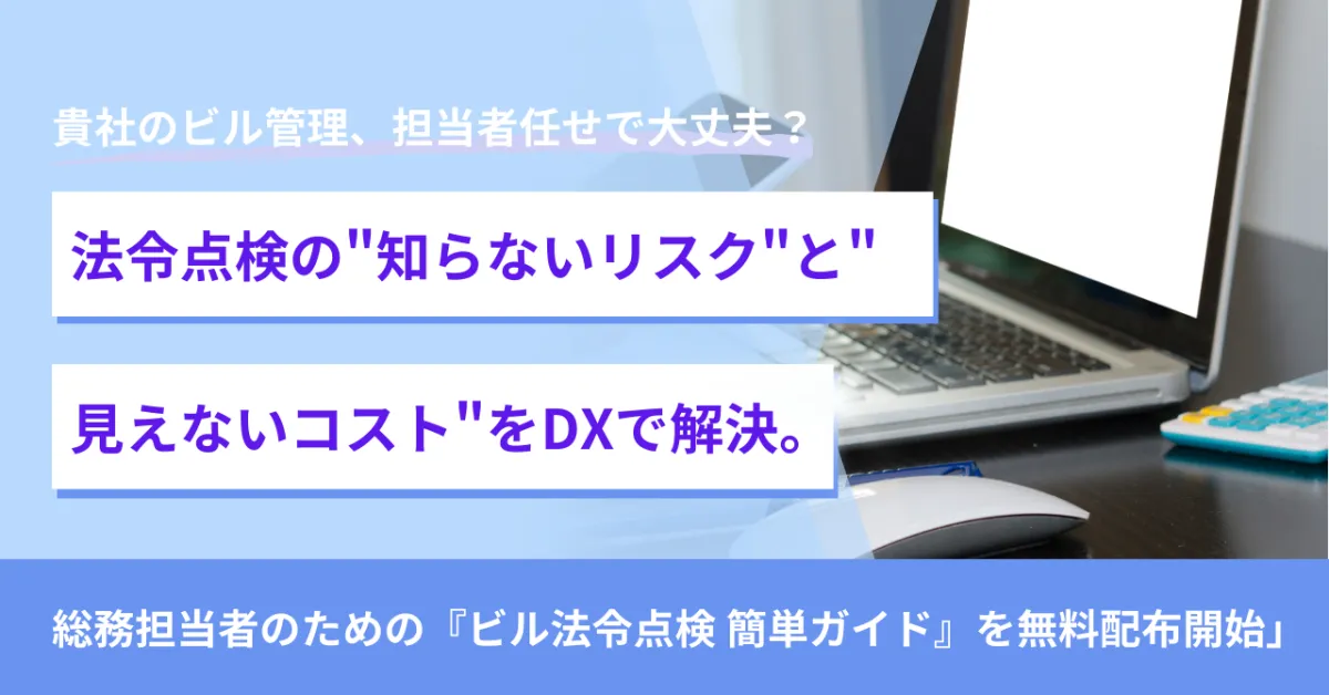 最後に、法令点検を初めて担当される総務の方々へ向けて、『事前にチェック!総務担当者のためのビル法令点検 簡単ガイド』を無料配布しています。このガイドでは、法令点検の流れや事前準備、点検時の注意点を分かりやすく解説しています。詳細はぜひガイドをダウンロードしてご確認ください。