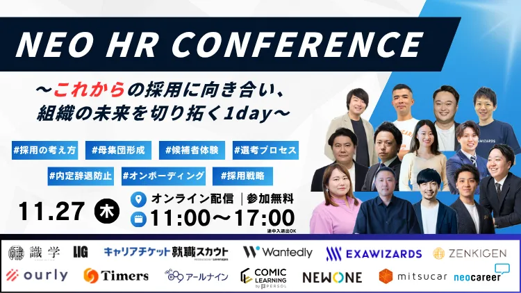 株式会社ネオキャリアは、2025年11月27日(木)に「NEO HR CONFERENCE」を開催します。これは、新卒・中途採用における最新の動向や、実践的な課題解決策を学ぶことができるオンラインカンファレンスです。
