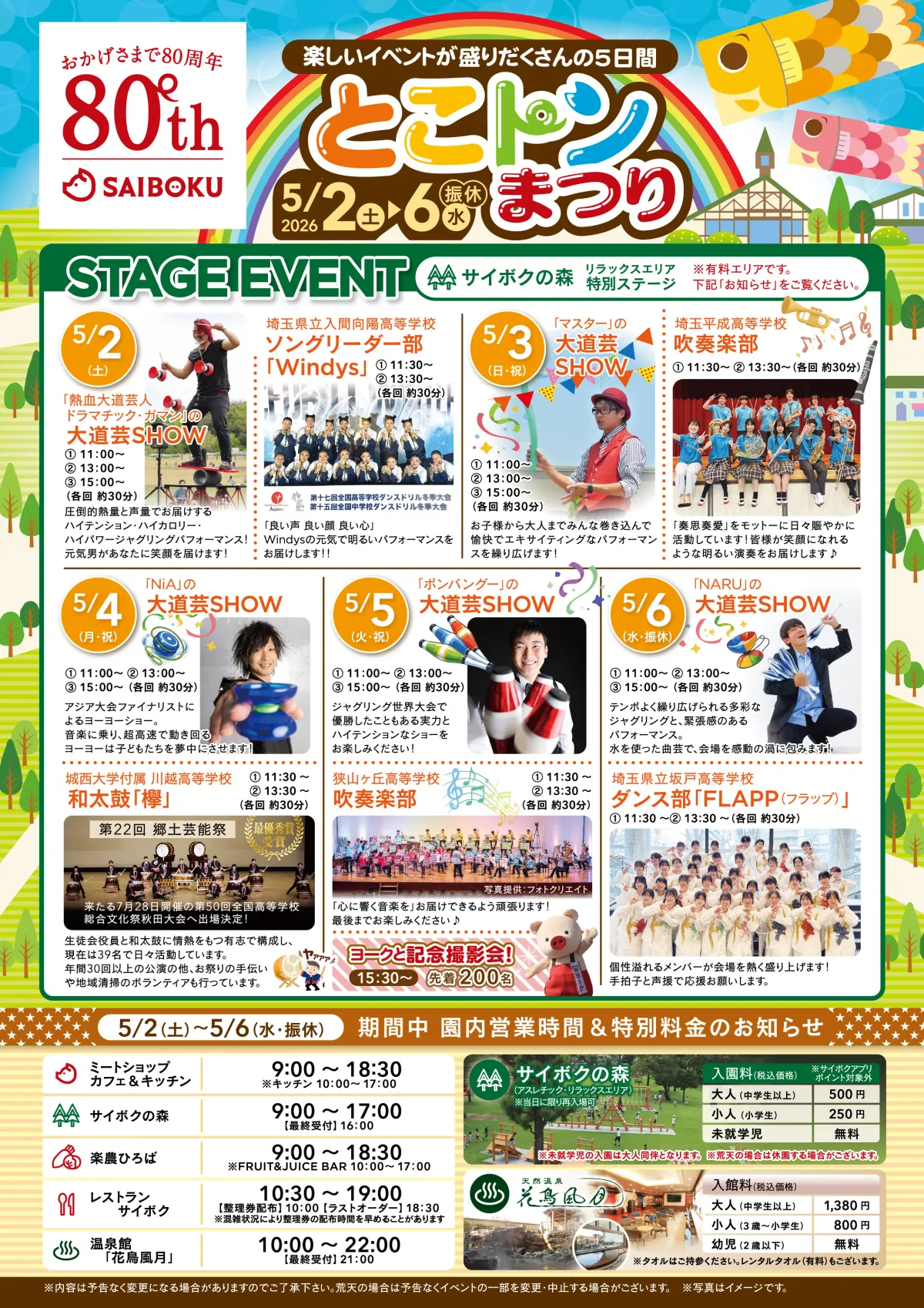 埼玉県日高市に位置する豚のテーマパーク「サイボク」が、2026年で創業80周年を迎えることを記念し、特別なお客様感謝祭「とこトンまつり」を開催します。このイベントは2026年のゴールデンウィーク、5月2日(土)から5月6日(水・振休)までの期間に実施されます。