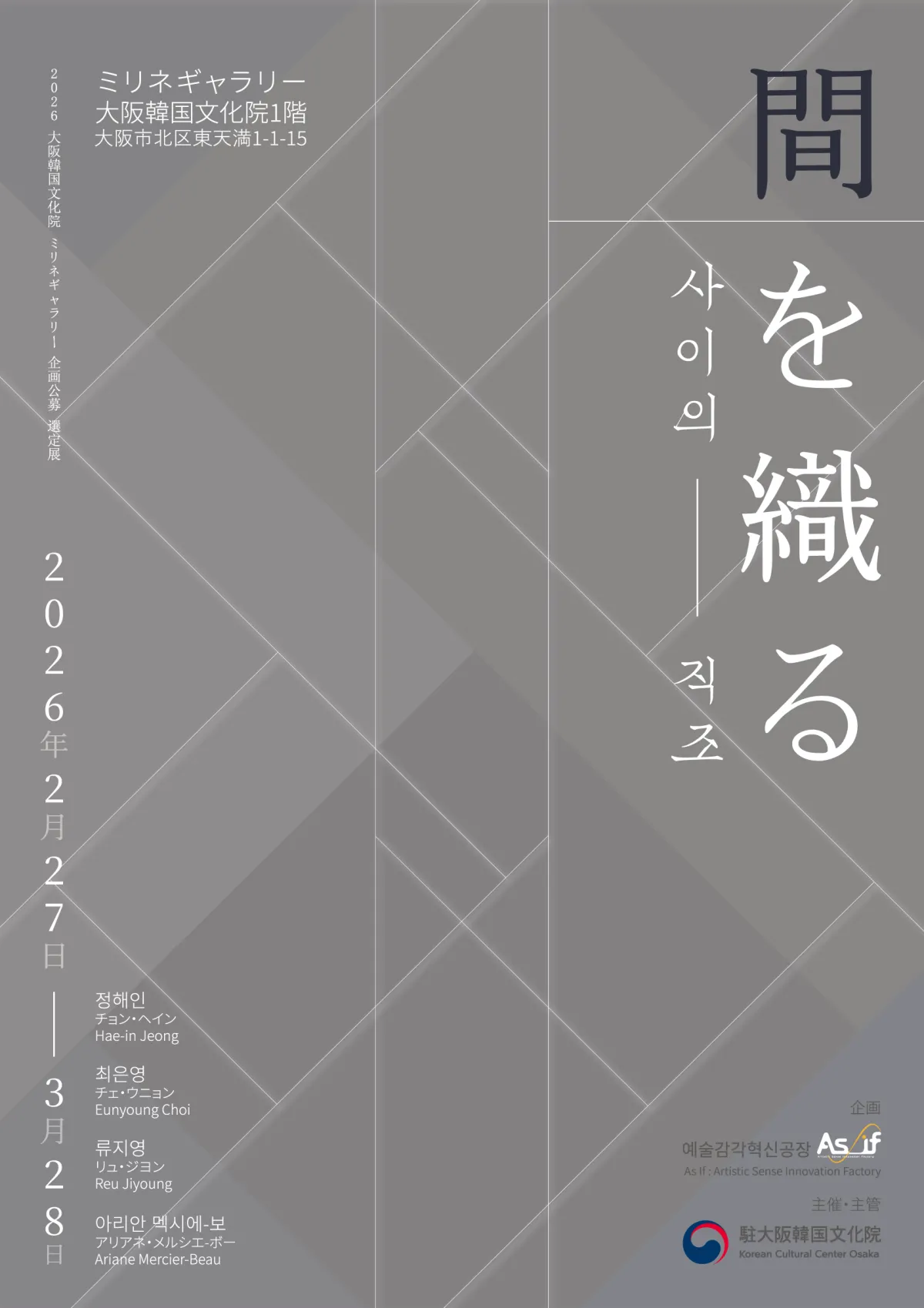 2023年の春、韓国文化院において「間を織る」と題された特別な展覧会が開催されます。この展覧会では、新進気鋭の作家たちが集結し、韓国の伝統的なパッチワークである「チョガッポ」をテーマに、境界と結びつきを探求します。この魅力的なプログラムは、2月27日から3月28日まで、大阪市北区に位置する大阪韓国文化院のミリネギャラリーで行われます。