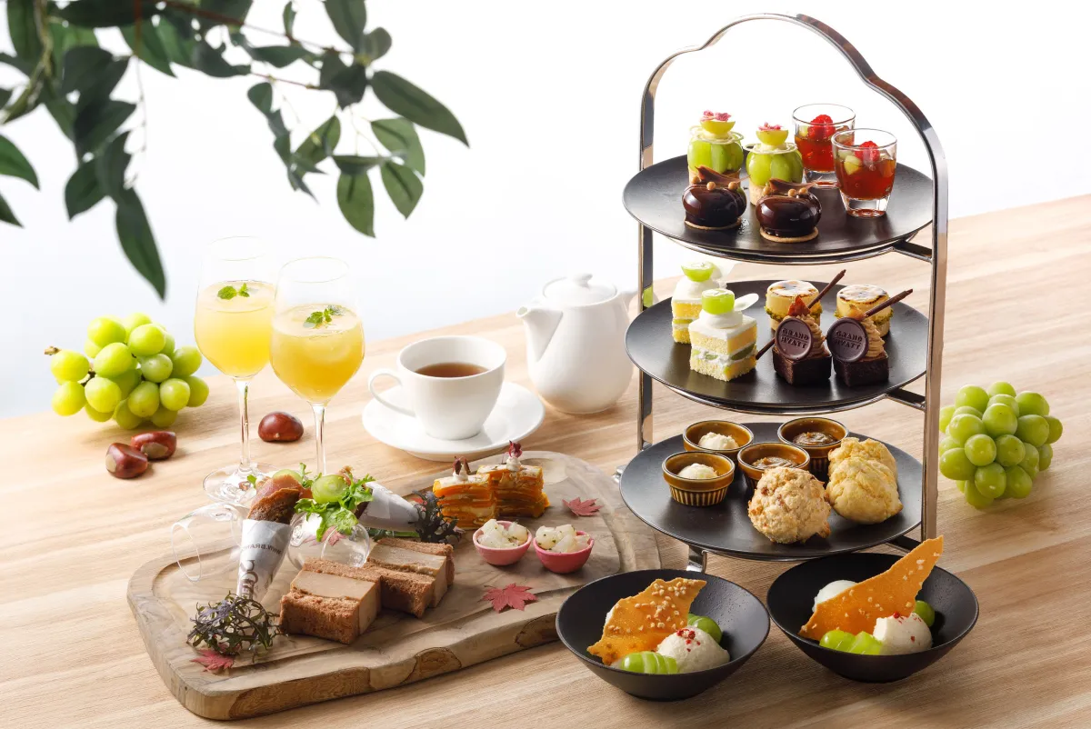 このアフタヌーンティーは、2025年9月15日から11月14日までの期間に提供されます。栗とシャインマスカットをふんだんに用いたセイボリーやスイーツが並び、秋の訪れを感じることができます。