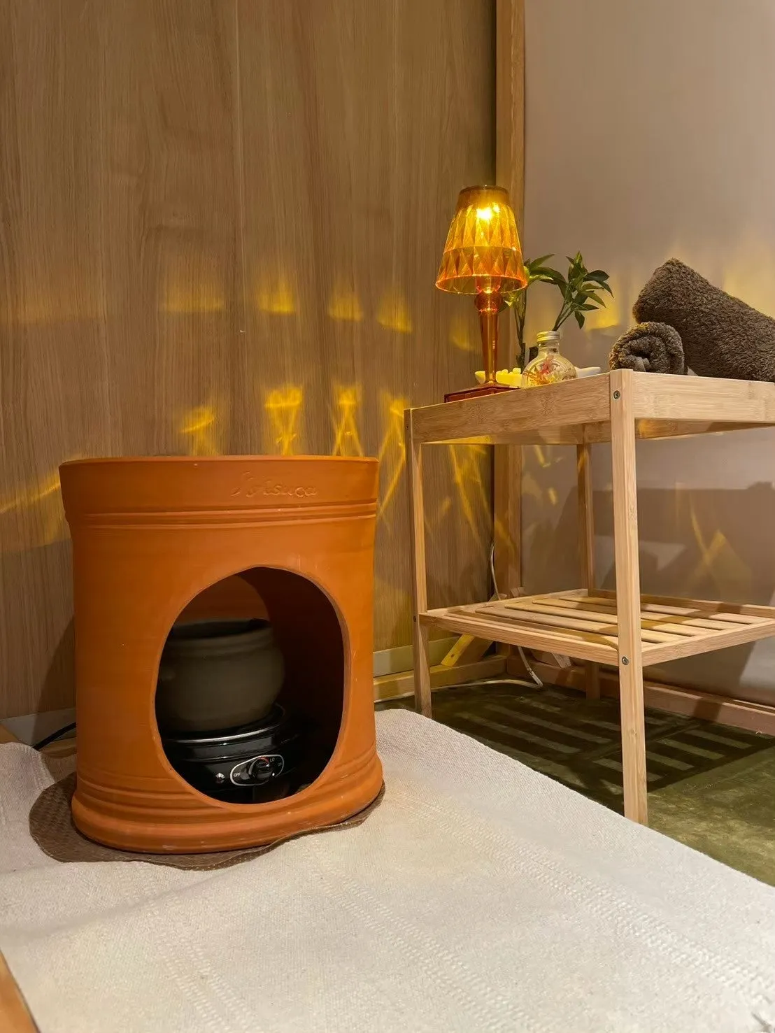 サロン内では、施術を受ける女性たちの姿が見られ、リラックスできる環境で心身のケアが行われています。多くの方が来店し、アットホームな雰囲気の中でよもぎ蒸しを楽しんでいます。この特別な場所で、心からリラックスし、体と心のリフレッシュを体験することができます。