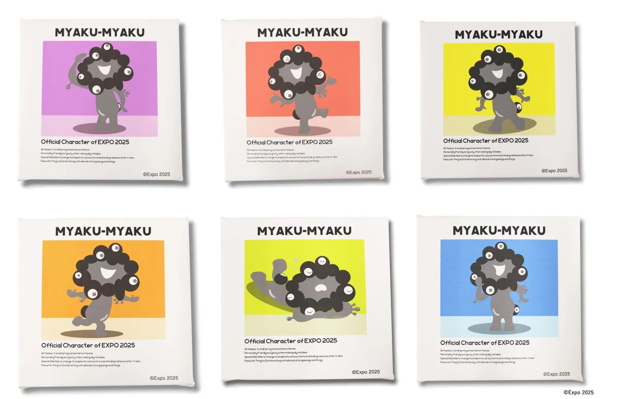 アートボードは、黒ミャクミャクのスタイリッシュな世界観を反映した6種類の異なるポーズで展開されています。サイズは180mm×180mm(S0号)でコンパクトながら、高密度なアート体験を提供。お部屋のインテリアやコレクションとしても、尽きることのない魅力を感じさせるアイテムです。