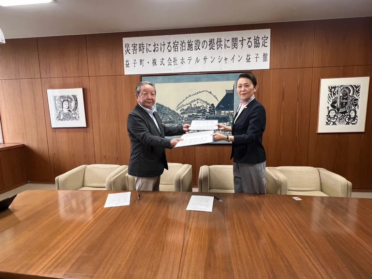 近年、大規模な自然災害が相次いで発生しており、地域住民にとって避難所を確保することは一層重要になっています。公共交通機関が運休する中、住民が安全に避難できる場所を準備することが求められています。こうした現状を踏まえ、益子町とホテルサンシャイン益子舘は協定を結びました。