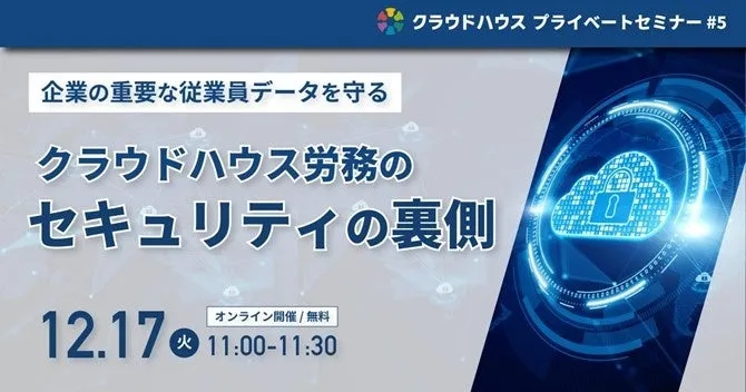 株式会社Techouseが運営する『クラウドハウス労務』は、2024年12月17日(火曜日)に「クラウドハウス労務のセキュリティ対策の裏側」と題したセミナーを無料で開催します。このセミナーでは、企業における重要なデータを保護するためのセキュリティ対策について詳しく解説します。