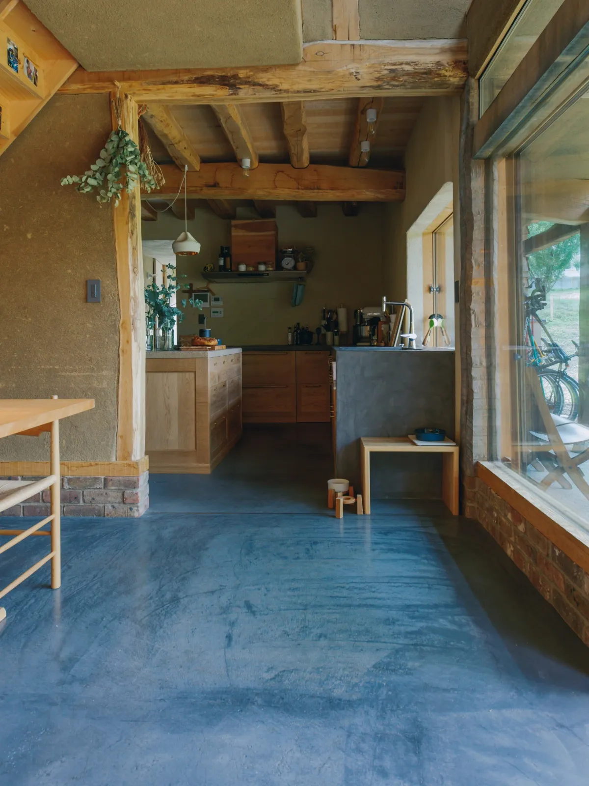 「ベルギー民家」は、完成後10年が経過し、時間と共にその美しさは進化しています。木の経年変化によって、梁や柱の木肌はより艶やかに、漆喰の壁には柔らかな陰影が生まれ、家全体が呼吸するように馴染んでいます。この経年美は、初めから意図されたもので、設計当初から「時間が美しさを仕上げていく」と考えていたからです。