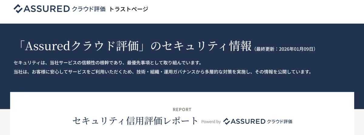 東京都渋谷区に本社を置く株式会社アシュアード(代表取締役社長:大森 厚志)は、クラウドサービスのセキュリティ信用評価を行う「Assuredクラウド評価」において、企業がセキュリティ対策状況を明示するための新機能「Assuredクラウド評価トラストページ」を正式に発表しました。