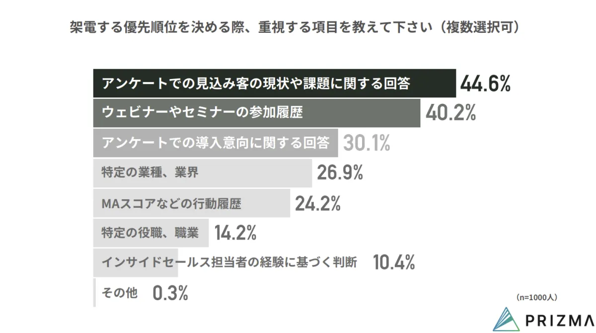 しかしながら、実際には大多数の責任者が「必要な情報が不足している」と感じており、架電時には「アンケート情報をうまく活用できていない」との声も挙がっています。これは、情報を商談化する上での無駄な時間とリソースの消費につながっているのです。データ活用が部分的にしか実行されていない現状が浮き彫りになりました。